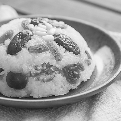 还有一种同样以糯米制成的经典应节甜食,就是八宝饭。“八”在国人的认知里,向来是一个吉利的数字,传达着渴望富足、好运的心愿。至于八宝饭究竟要用哪八种食材,其实并没有全国统一的定论,但一般少不了莲子、红枣、薏仁米、青红丝果脯等,多数是甜味食材,也各自被赋予了意头说法,像莲子寓意“早生贵子”“婚姻和谐”,薏仁代表“长寿”“高洁”,青红丝表示“祝?!薄跋睬臁钡?。
