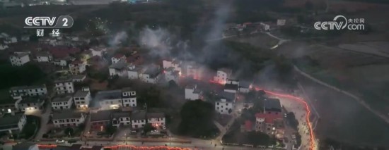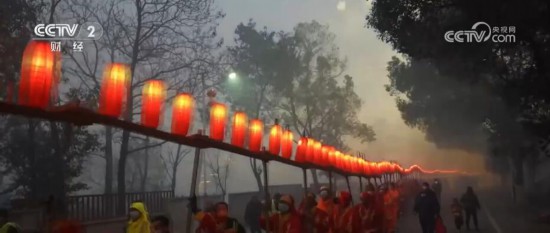 近日,一条火红的“板灯龙”灯队穿梭于江西南昌安义县,“板灯龙”连接在一起,气势磅礴。