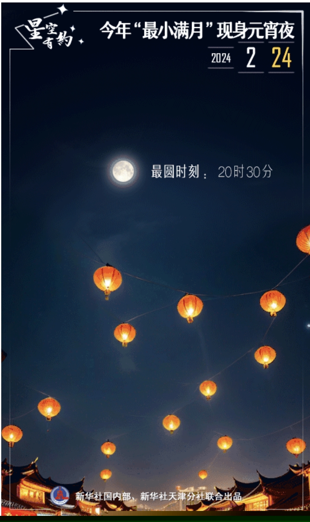 2月24日,正月十五元宵节,又是一年赏月时。天文科普专家表示,这轮元宵月不仅是“十五的月亮十五圆”,还是今年“最小满月”。