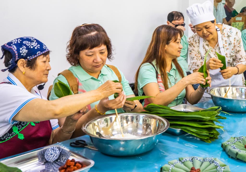 2024年6月9日,湖北省秭归县茅坪镇滨湖社区群众一起包粽子。新华社发(郑家裕摄)