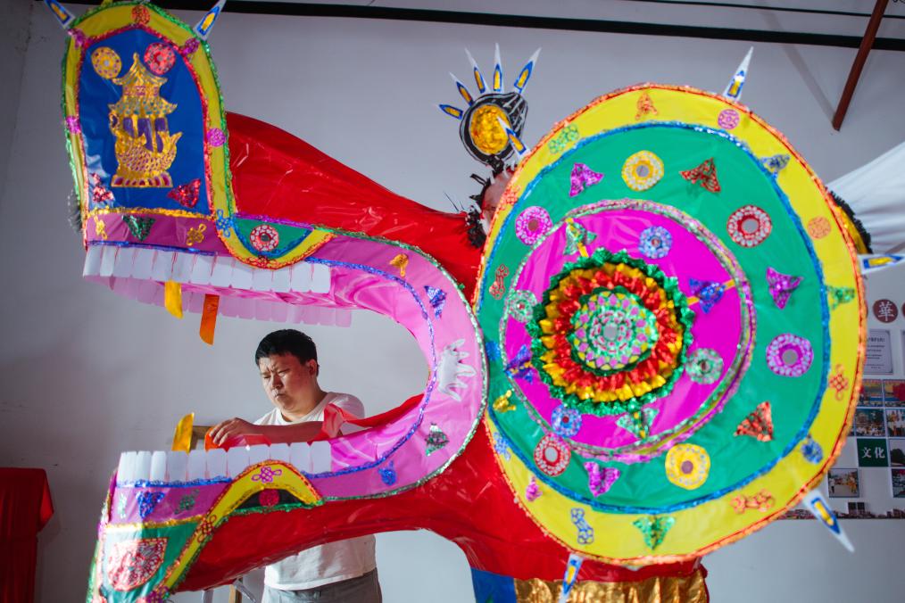 端午节前,工匠们为迎接即将到来的西塞神舟会,对神舟进行最后的装点。新华社记者伍志尊 摄
