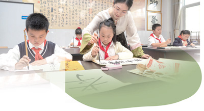 安徽合肥市小学生正在书写家风家训。 赵 明摄(影像中国)