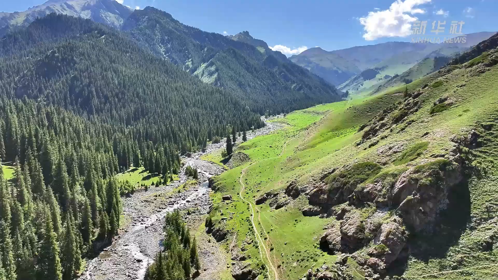 盛夏七月,横跨天山南北的车师古道迎来一年中的最美时节,森林茂盛、溪水潺潺、绿意盎然,美不胜收。