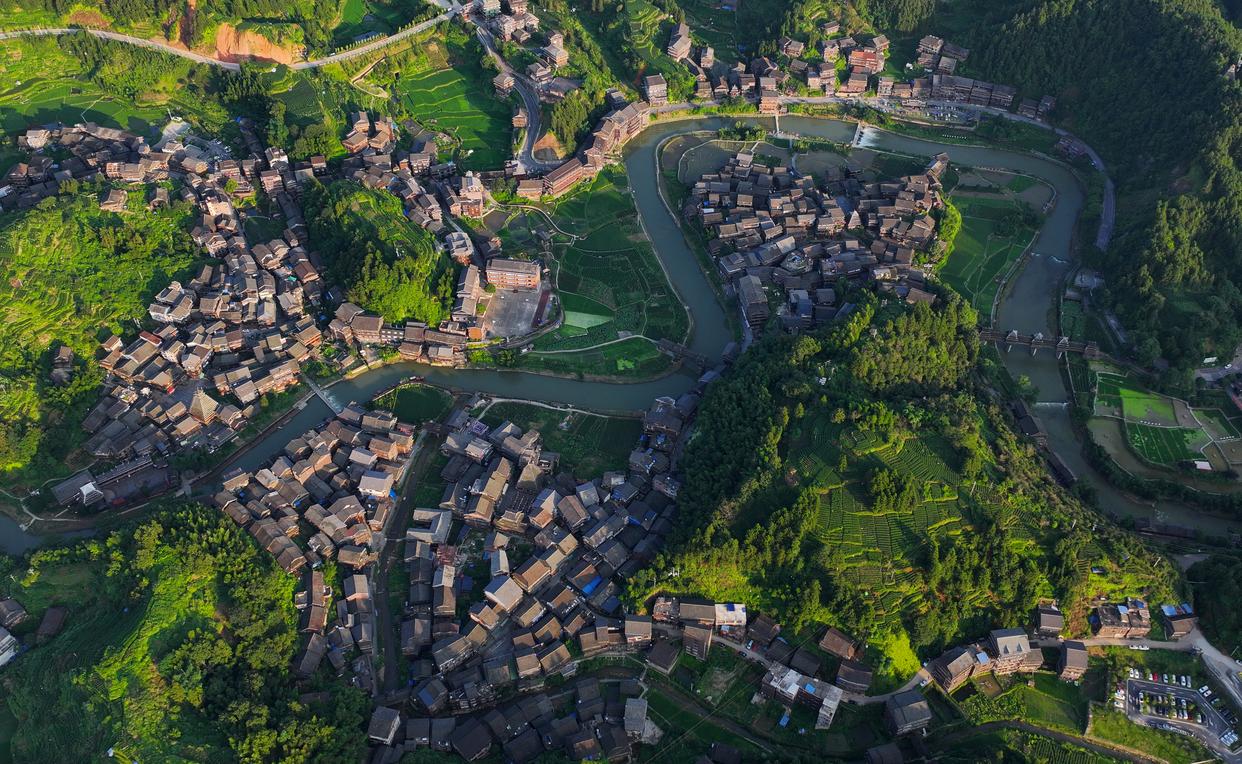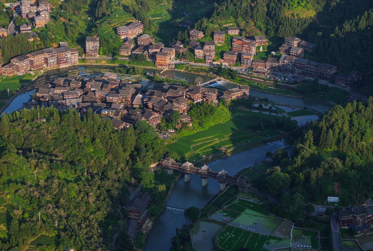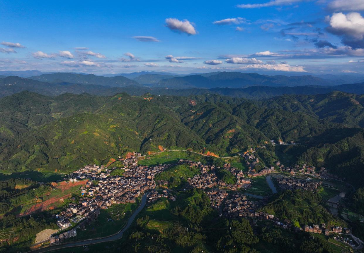 这是广西柳州市三江侗族自治县林溪镇平岩村全貌(无人机照片,7月7日摄)。 新华社记者 黄孝邦 摄