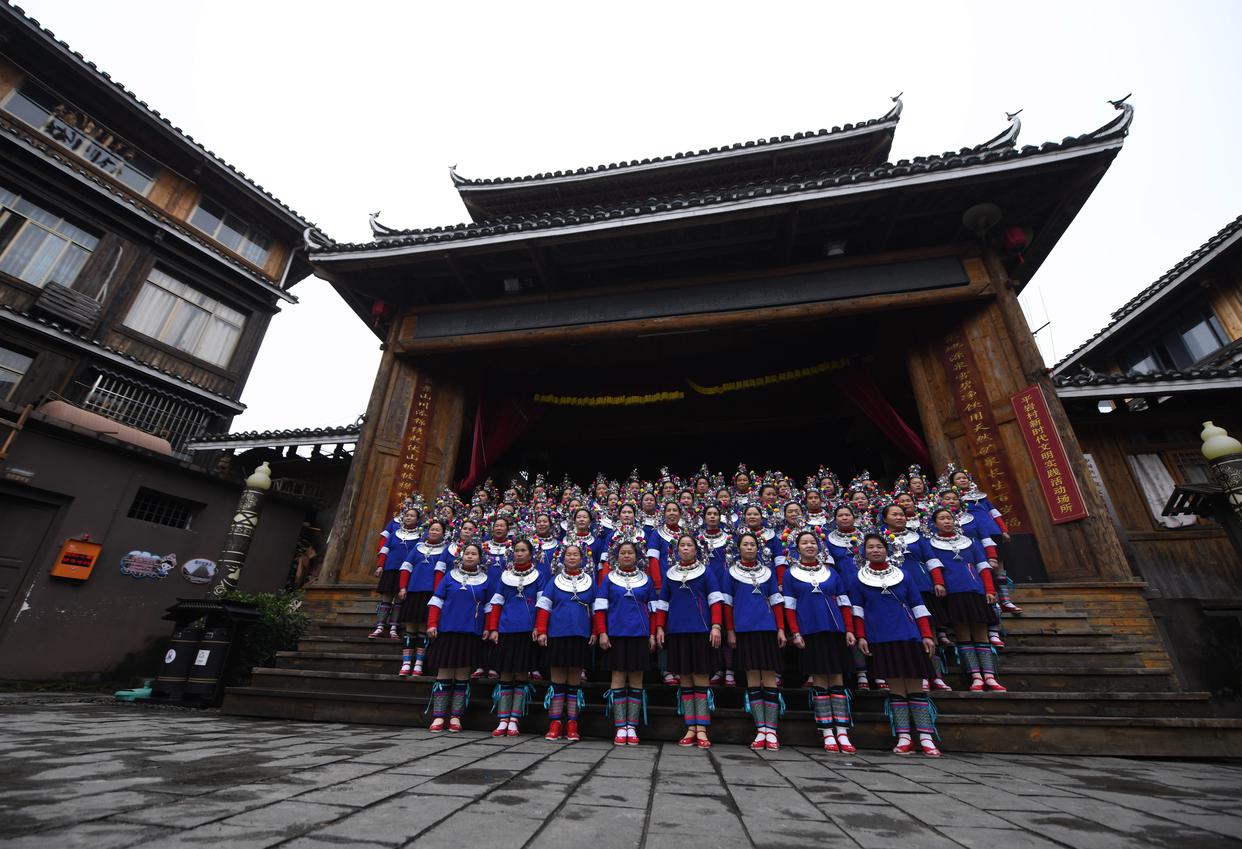 在广西柳州市三江侗族自治县林溪镇平岩村,村民在练习唱侗族大歌(1月28日摄)。 新华社记者 黄孝邦 摄