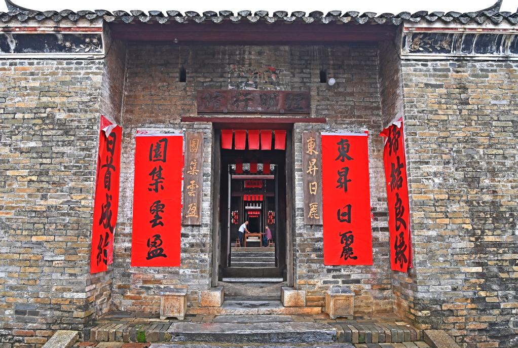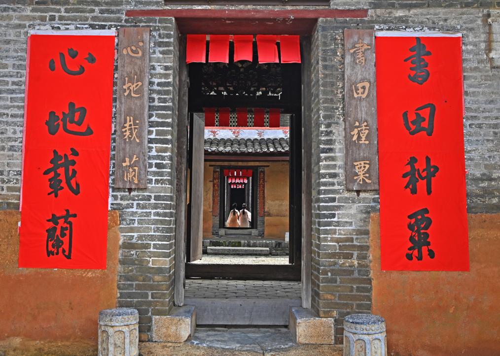 大芦村古宅上大多都有古楹联(8月16日摄)。