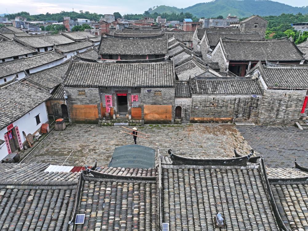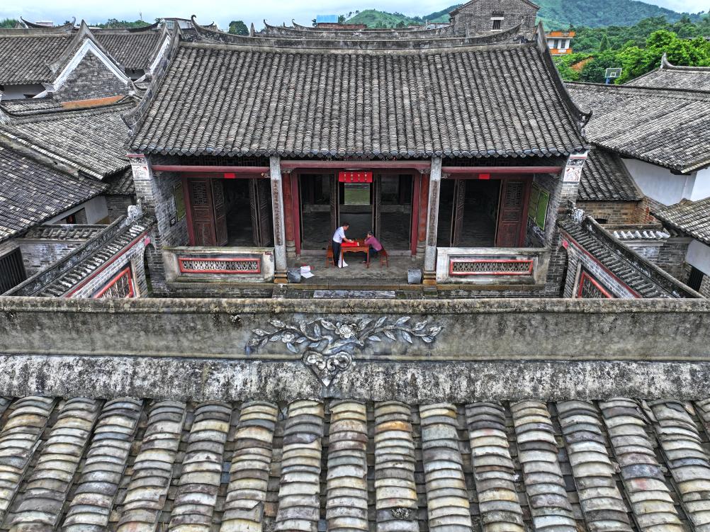 大芦村古宅屋顶上精美的雕花(8月15日摄,无人机照片)。