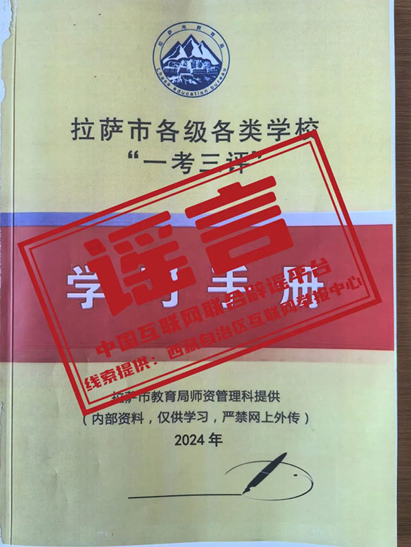 详情:近期,西藏自治区拉萨市教育局接到教师反馈,称有人以拉萨市教育局师资管理科名义,以50元/本的价格,售卖2024年《拉萨市各级各类学?!耙豢既馈毖笆植帷?。对此,拉萨市教育局发布辟谣声明称:我局2024年未印发“一考三评”学习手册,未委托任何机构和个人以任何形式向教师售卖2024年《拉萨市各级各类学?!耙豢既馈毖笆植帷?。请广大教师保持高度警惕,不信谣、不传谣、不造谣,谨防上当受骗。(来源:“西藏举报”微信公众号、“拉萨教育”微信公众号)