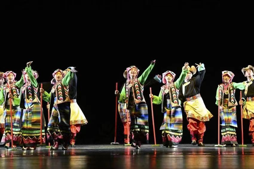 6月18日,拉萨北京实验中学学生在国家大剧院表演民族舞蹈。(受访者供图)