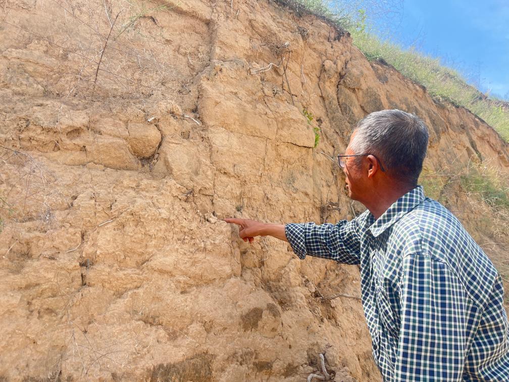 “这儿以前都是土坡坡,人顺着坡就爬上去了,周边只要长点草,就有人来放羊?!敝缸耪虮碧ǘ嗟囊黄ê?,纪板娃回忆道。
