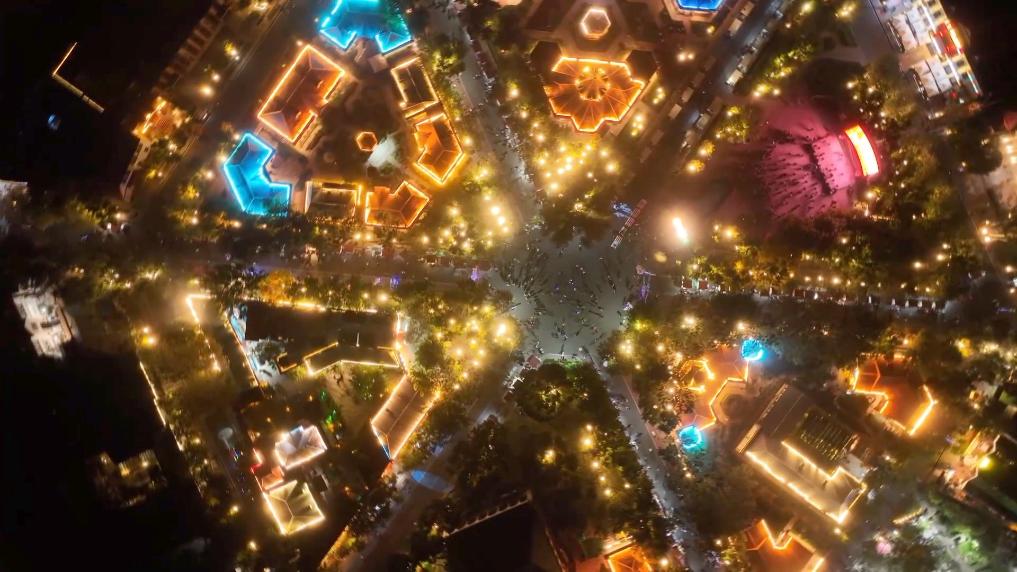夜幕下的六星街像是一杯美酒,热烈而浓郁,高低不同的建筑,在灯光的照耀下错落有致,整座街区沐浴在五彩斑斓的霓虹灯下,更加浪漫。