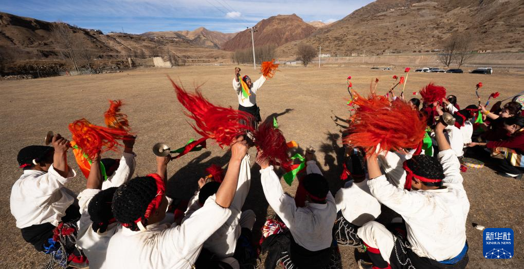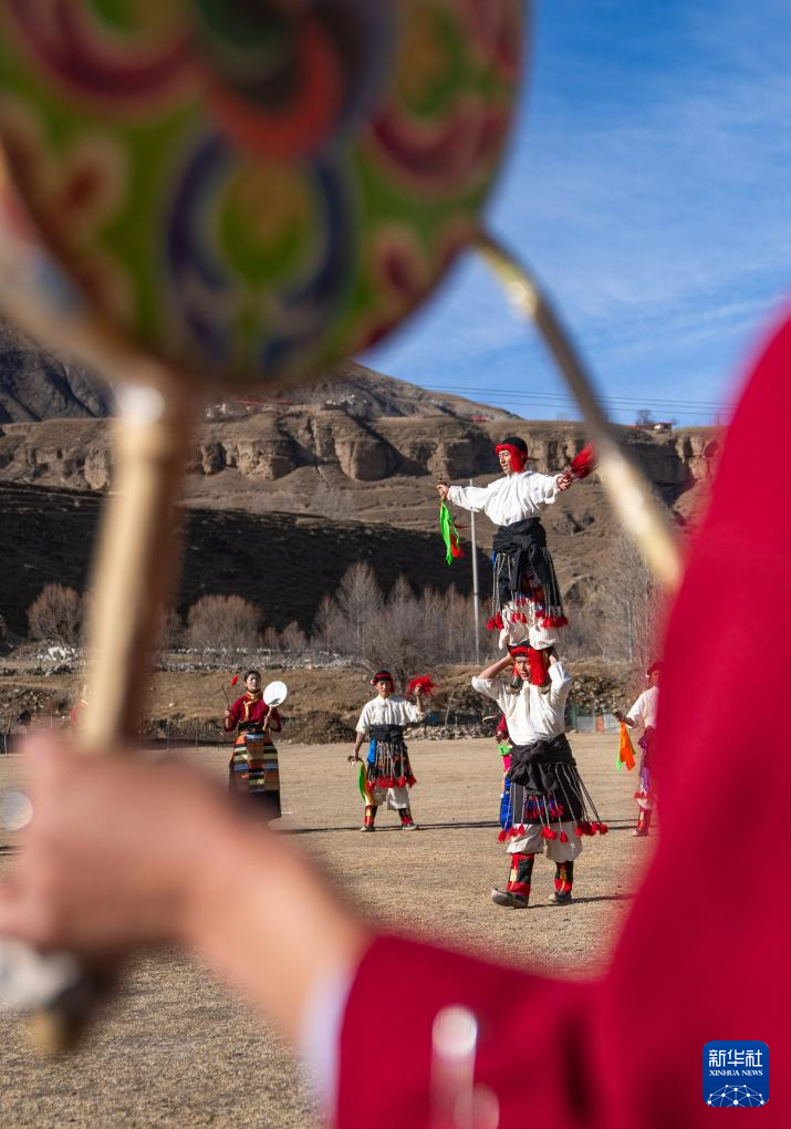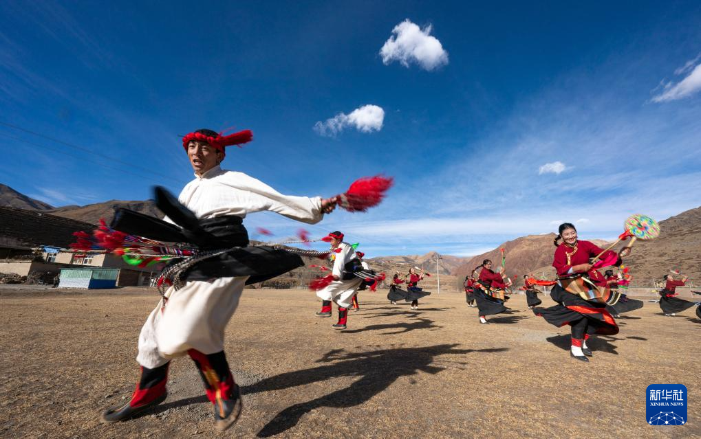 西藏昌都市丁青县尺犊镇乌巴村文艺演出队在跳热巴舞(1月5日摄)。新华社记者 丁增尼达 摄