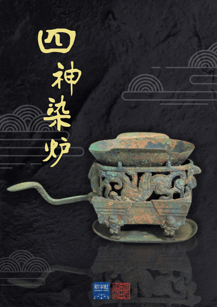 这件小巧的器具?名为四神染炉,是一种饮食器,构造分为三部分。炉体呈椭圆形,下面有四个人形立足于承盘内。