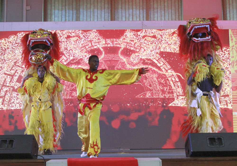 1月11日,在津巴布韦首都哈拉雷举行的华侨华人新春庙会活动上,津巴布韦青年舞狮团进行舞狮表演。新华社发(塔法拉摄)
