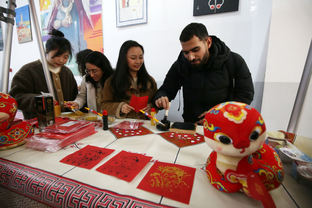 在埃及吉萨,“尼罗泛龙舟”春节主题活动设置了龙舟拔河赛、龙舟竞速赛等环节,让人们感悟不同文化传统之间的交融;在阿尔及利亚,“欢乐春节——中华文化进校园”活动走进阿尔及尔第二大学,学生伊萨姆说,在剪纸过程中体味到“宁静和谐的东方哲理”;在匈牙利布达佩斯中国文化中心,中匈两国非遗代表性传承人分别介绍苏绣和马丘刺绣的历史传统与艺术特点,并指导观众练习刺绣技法;在英国伦敦,曾在中国生活多年的英国人理查德·霍利在“欢乐春节——非遗雅集”活动上用毛笔写下“?!焙汀吧摺绷礁龊鹤?;在突尼斯首都突尼斯市,当地民众品尝中国美食,学编中国结,拓印“?!弊?;在约旦费城大学,师生们体验中国棋艺、茶艺,通过VR视频观赏中国山河美景;在赞比亚少林寺文化中心,人们排起长队,敲钟祈福……