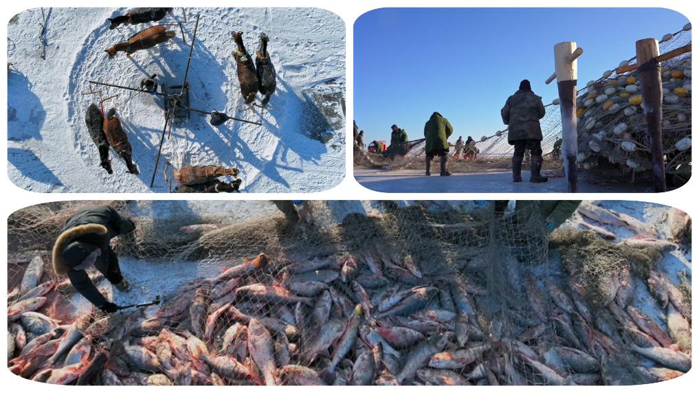 这项传承千年的渔猎方式,源于古人冬季祭天醒网、冰湖捕鱼的传统。如今,以文化为载体,查干湖旅游的含金量逐步上升。每年都会有数以万计的游客来此观冬捕、吃鲜鱼、嬉冰雪。