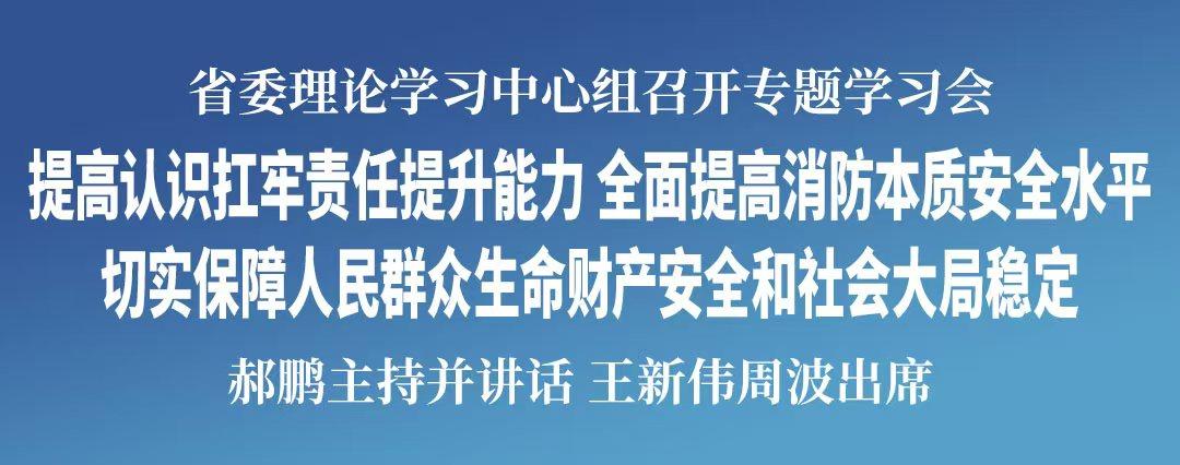 5月14日,省委理论学习中心组召开专题学习会,深入学习贯彻习近平总书记重要论述和重要指示精神,通过开展消防安全知识专题学习,推动全省各级领导干部带头增强消防意识、落实消防责任、提升消防本领,带动全社会形成人人讲安全、个个会预防、随时能应急的浓厚氛围。省委书记郝鹏主持会议并讲话。省委副书记、省长王新伟,省政协主席周波出席会议。