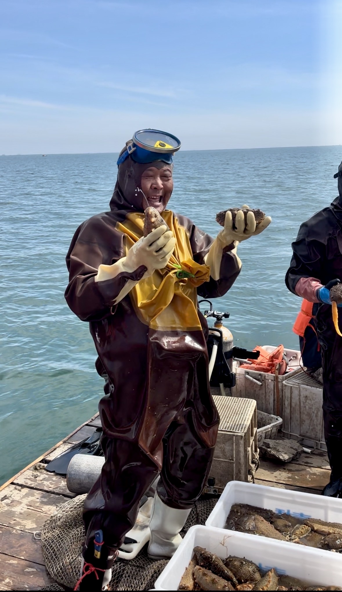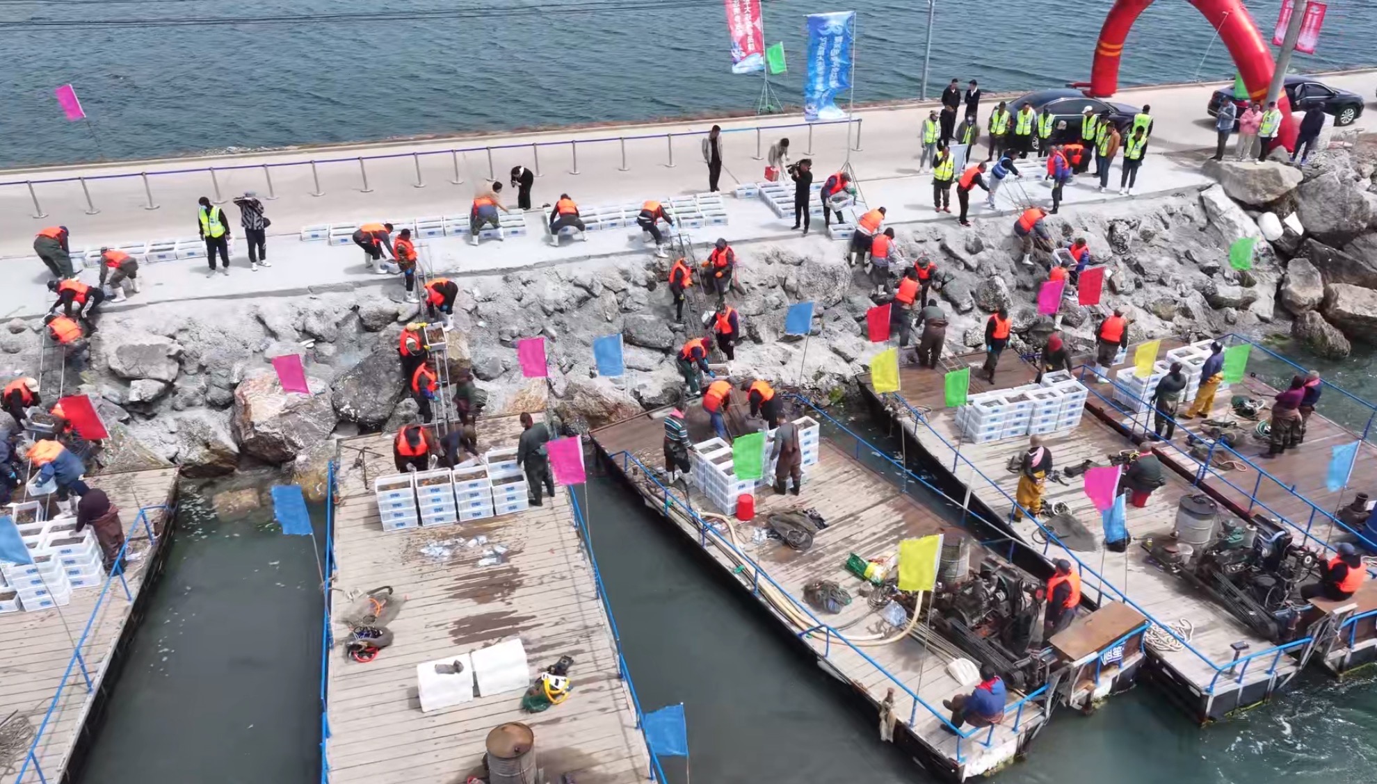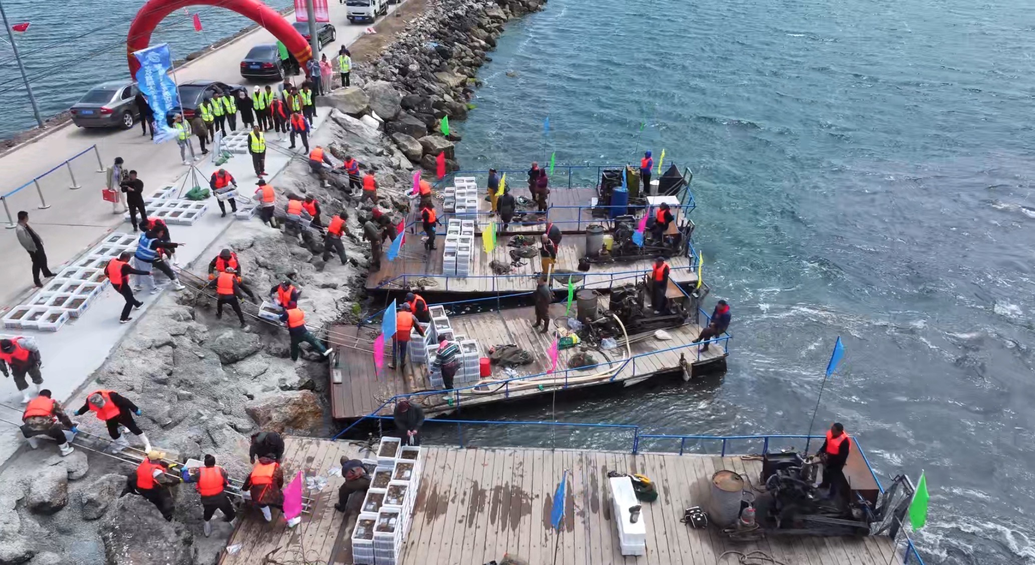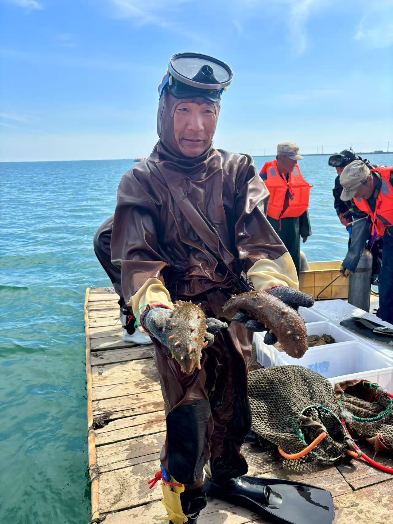 本次采捕节上,30名潜水员在深海采捕鲜活海参的场景通过直播镜头实时呈现。现场设置了6口海鲜蒸煮大锅,以自助形式供应现捕海参、螃蟹等渤海湾特色海产,辅以瓦房店虾皮等地标产品品鉴,打造“从海洋到餐桌”的沉浸式体验。