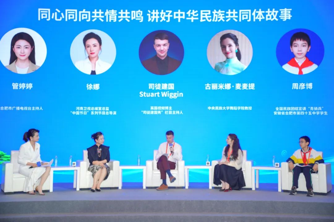 本次分论坛以“构筑中华民族共有精神家园网络空间”为主题,中国人民大学教授沈江平,中央民族大学教授肖小勇,安徽师范大学教授刘道胜,中国日报社副总编辑孙尚武,中国民族报社总编辑闫永分别发表主旨演讲。河南卫视总编室总监徐娜,视频博主司徒建国(Stuart Wiggin,英国籍),中央民族大学教授古丽米娜·麦麦提,全国民族团结宣讲“青骑兵”、安徽省合肥市第四十五中学学生周彦博等嘉宾,围绕“同心同向共情共鸣 讲好中华民族共同体故事”进行圆桌对话。