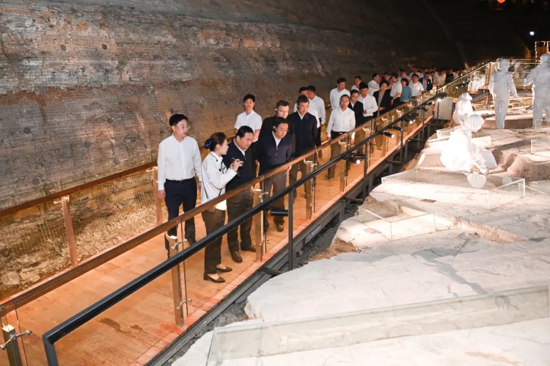 会前,郝鹏、王新伟、周波等省领导和与会人员共同参观辽宁朝阳鸟化石国家地质公园。这里是世界唯一原位遗址性化石主题公园,全场景系统展示了热河生物群的千余种化石,珍藏的辽宁古果、中华龙鸟化石世界瞩目,朝阳因此被誉为“世界上第一朵花绽放、第一只鸟飞起的地方”。