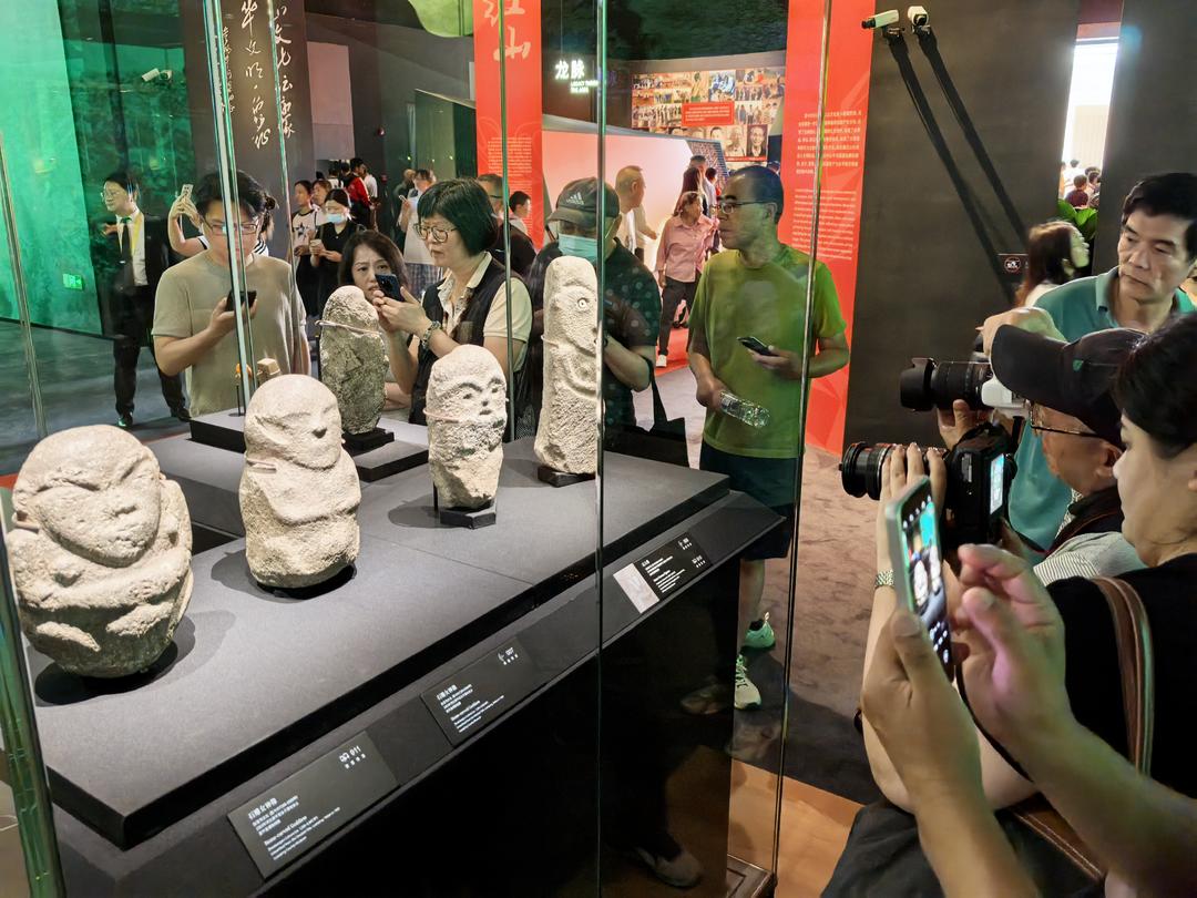 “龙腾中国:红山文化古国文明特展”开展首日,即迎来观众爆棚。驻足观看,拍照留念,低声探讨,“红山玉器”“红山文化”“牛河梁”“女神”……这些成了现场的“高频词”。