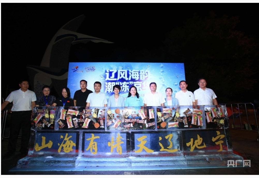 为了让北京市民游客沉浸式体验到辽宁“冻感”十足的夏日特色,辽宁文旅携手中街冰点定制的“山海有情 天辽地宁”主题冰墙“空降”活动现场。辽宁文旅推介团共同为“特种冰”冰墙揭幕——一座冰封着辽宁特色雪糕的冰墙,并现场赠送3000支雪糕,将辽宁心意以“最凉爽”的方式传递至每位来宾手中。