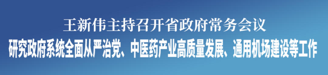 7月7日,省委副书记、省长王新伟主持召开省政府常务会议,认真学习贯彻习近平总书记近期重要讲话精神,按照省委要求,研究政府系统全面从严治党、中医药产业高质量发展、通用机场建设等工作。