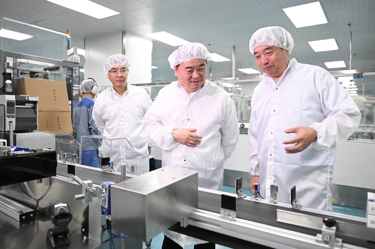 省委书记、省人大常委会主任郝鹏察看晖致制药(大连)有限公司药品外包工艺生产线。