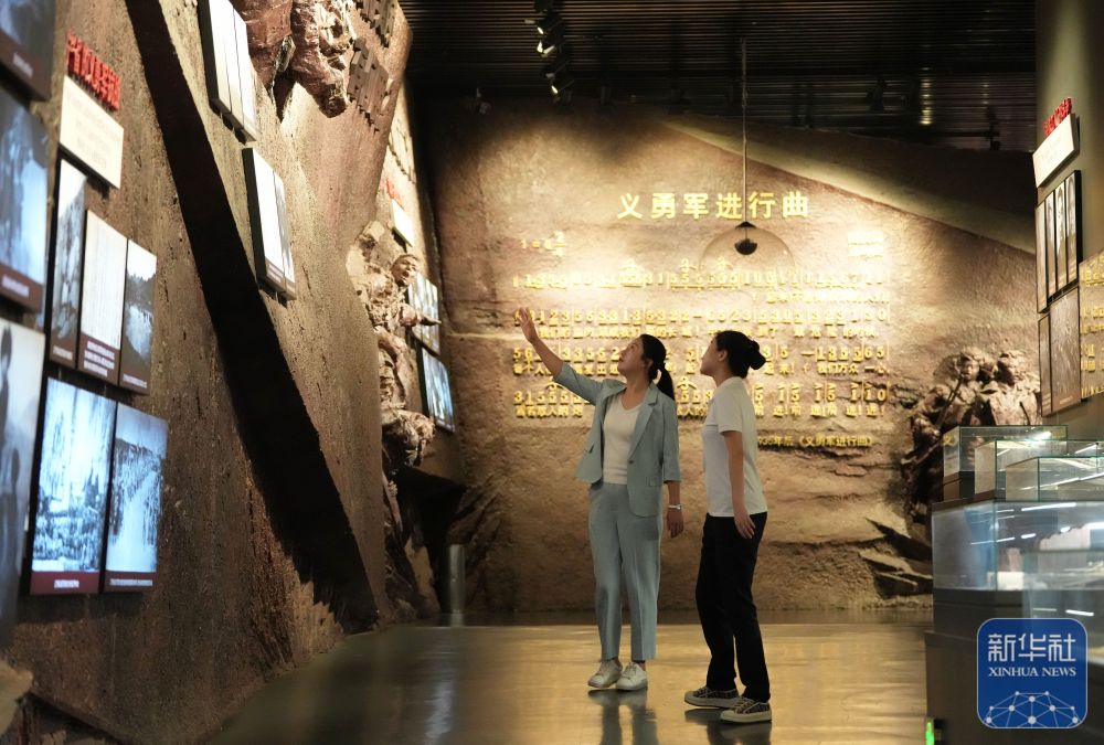 ↑ 7月28日,在“九一八”历史博物馆,石任华(左一)和同事查看抗战文物。