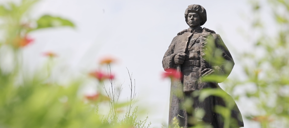 簇拥着将军的雕像