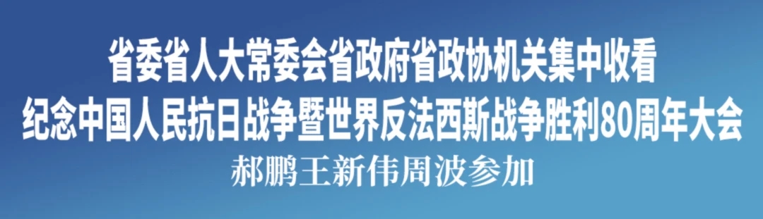 铭记历史、缅怀先烈、珍爱和平、开创未来。9月3日,纪念中国人民抗日战争暨世界反法西斯战争胜利80周年大会在北京天安门广场隆重举行。中共中央总书记、国家主席、中央军委主席习近平发表重要讲话。省委、省人大常委会、省政府、省政协机关集中收看纪念大会直播。省委书记、省人大常委会主任郝鹏,省委副书记、省长王新伟,省政协主席周波分别在各自机关收看。