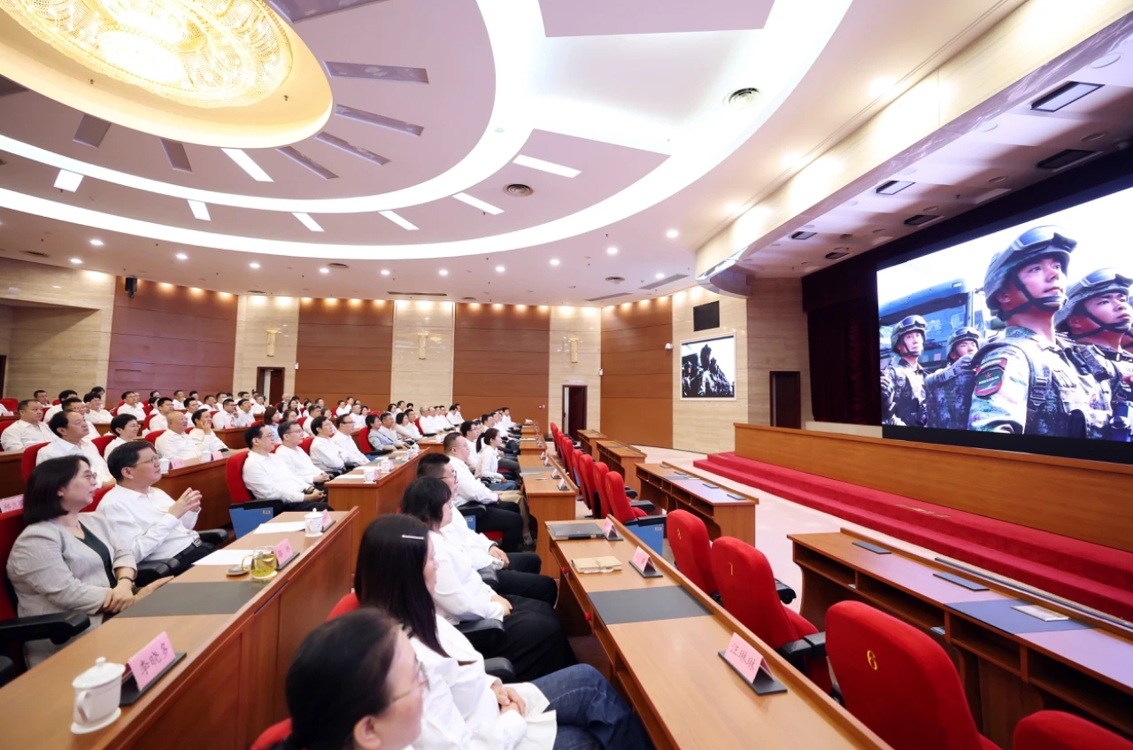 省委机关集中收看纪念中国人民抗日战争暨世界反法西斯战争胜利80周年大会,省委书记、省人大常委会主任郝鹏参加观看。