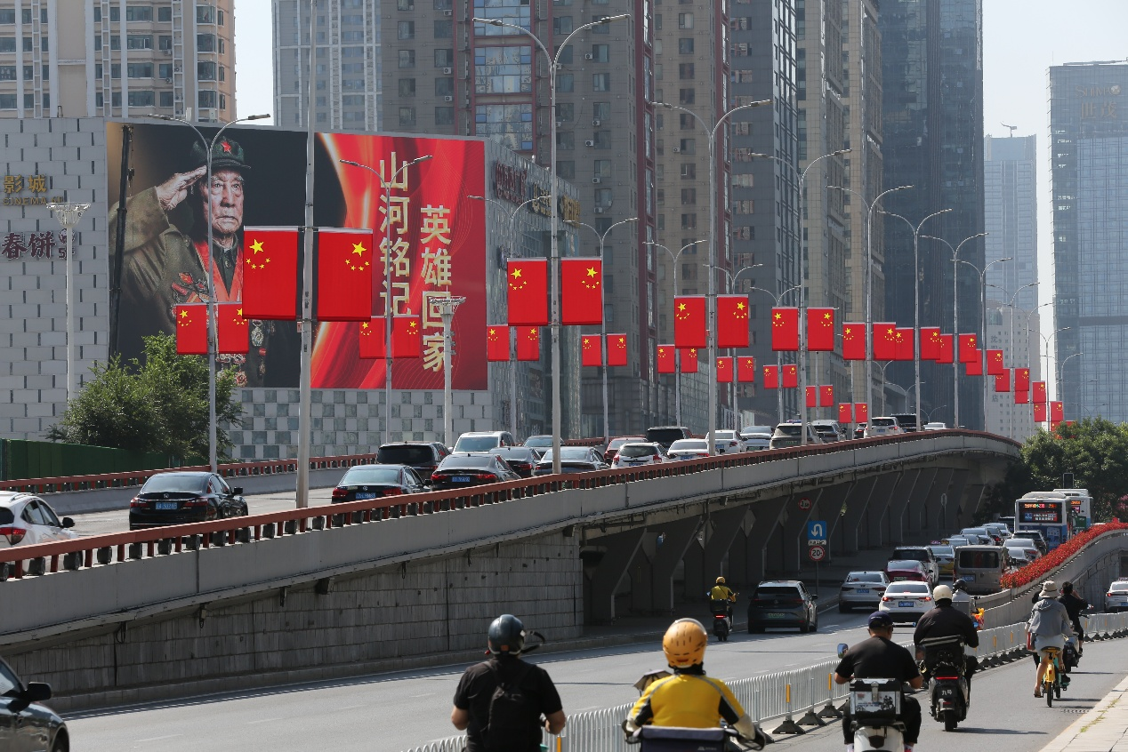 以自强不息、以国富民强、以满城“中国红”,致敬历史,致敬今天。