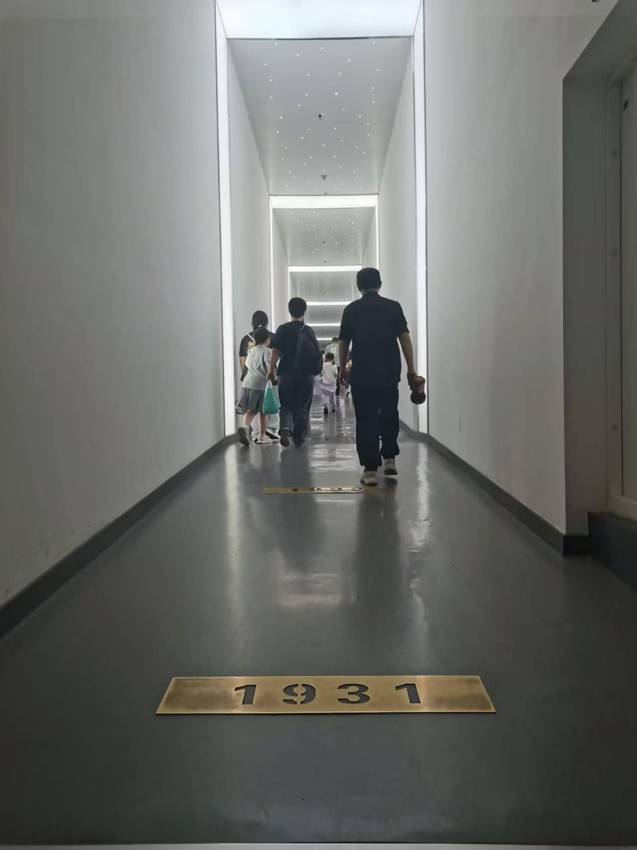 在沈阳“九·一八”历史博物馆,展厅的出口是一段长长的走廊,地面镶嵌有刻着1931到1945数字的铜牌。观众结束参观,从灯光昏暗的展厅走到明亮的走廊,从1931走向1945,仿佛重获新生。很多观展者走到这里都会长长地舒一口气,说一句“走向光明了”。