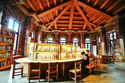 国庆中秋长假期间,由沈阳的老厂房、老仓库改造的文创园和游乐场人头攒动。经过近年来的改造,曾经机器轰鸣的厂区、存储粮食的仓库等,已成为当地的潮玩新地标。图为10月6日,游客在沈阳奉天工厂文创园内的城市书房内阅读。新华社记者 潘昱龙摄